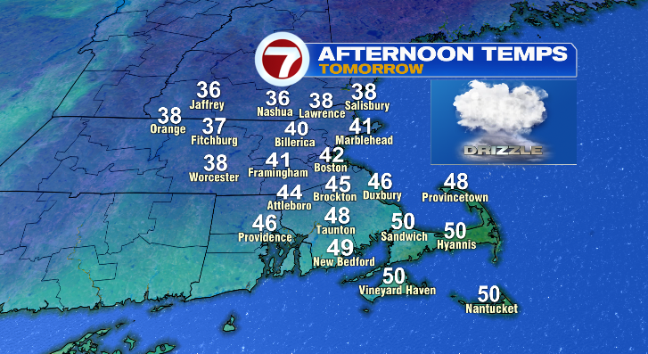 Be careful in the Worcester Hills again, as temperatures there will only be in the 30s even in the afternoon, bringing a risk for freezing drizzle. Everyone else will be too warm.