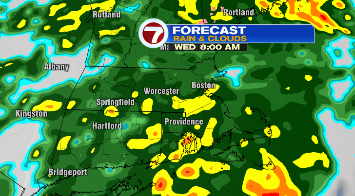 The rain has already moved into Massachusetts to kick off the work week and it’ll stick around through bedtime tonight.