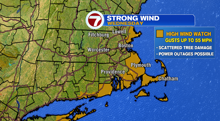 There is also a serious wind threat. That’s especially true this time of year when many people have holiday decorations out. Make sure to secure them! Wind gusts will top 40 mph for many with gusts over 50 mph ahead for the coast and the Cape. The National Weather Service has issued a high wind watch in advance of the expected strong to potentially damaging wind.
